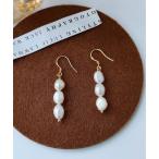 【ゆうパケット送料無料】 ピアス チタンポスト 低アレルギー レディース ブランド 揺れる 淡水パール 3連 三連 大人カジュアル 大人 上品 エレガント 華奢 シンプル フェミニン ホワイト グレー