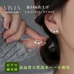 ピアス レディース パールピアス ダイヤCZ 金属アレルギー対応 シルバー 金18k仕上 3粒 パール 真珠 天然淡水パール 貝パール ギフト 母の日 ホワイトデーお返し