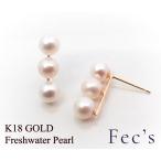 ピアス レディース アレルギー対応 ニッケルフリー K18 18金 ゴールド 三連パール スタッドピアス ペア 両耳用 天然 淡水パール 真珠