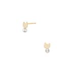 ピアス K10イエローゴールド ネコ 淡水パールピアス レディース