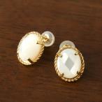 大粒 カット 白蝶貝 ピアス 2P 両耳用 K10 ゴールド シェル 貝 天然石 オーバル チェスカット キラキラ かわいい レディース