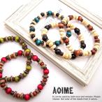 カラフル ウッドビーズ ゴム ブレス 数珠 メンズ レディース ブレスレット 3-8022