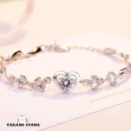 ブレスレット レディース ハート 豪華5粒 ダイヤ/プラチナ仕上げ シルバー925/ギフト 誕生日お祝い クリスマスプレゼント 女性 妻 嫁