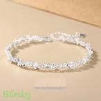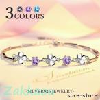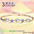 ブレスレット レディース お花 四つ葉のクローバー 3連粒ダイヤ プラチナ仕上げ シルバー925 彼女 妻 女性 誕生日プレゼント