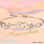 ブレスレット レディース/2粒ダイヤ ハートブレスレット/プラチナ仕上げ シルバー925/女性 誕生日プレゼント 記念日 ギフト