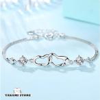 ブレスレット レディース ハート ダイヤ 2粒 ハートモチーフ プラチナ仕上げ シルバー925 プレゼント 彼女 妻 女性