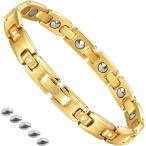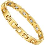 ブレスレット レディース 純チタン製 軽量 アレルギーフリー 磁気ブレスレット (G-ゴールド)