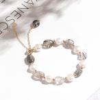 天然石 淡水パール ブレスレット レディース 結婚式 母の日 新作 シンプル (ブラックルチルクォーツ)