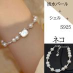 ブレスレット レディース 淡水パール シェル ネコ シルバー925 パール シルバー アクセサリー ネコブレスレット 猫 プチプラ