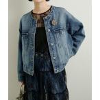 デニムジャケット gジャン ブローチ付きダメージデニムGジャン レディース
