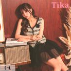 キャバ ドレス キャバドレス 大きいサイズ ミニ キャバワンピ ブローチ付き 千鳥柄 パールボタン フリル タイト ミニドレス XL 2L