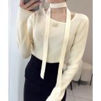 ニット セーター 「mily bilet」女性らしさを格上げ。ブローチ付きアシメトリーネックオフショルマルチウェイチョーカー付きニットプルオーバー レ