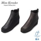 ミスキョウコ 4E 撥水ストレッチコンビショートブーツ100924【送料無料】雨天 内側ファスナー 中敷き 低反発クッション レディース 婦人靴 日本製 Miss Kyouko
