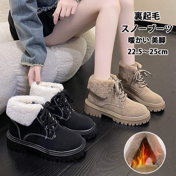 《特別企画:10%OFFで3582円》スノーブーツ レディース 滑らない ムートンブーツ ショート スノーシューズ ボア ショートブーツ ローヒール 歩きやすい ブーツ 厚底 編み上げ 疲れない シューズ 靴 裏起毛 冬 暖か あったか 防寒 撥水 滑り止め 厚底ブーツ ワークブーツ