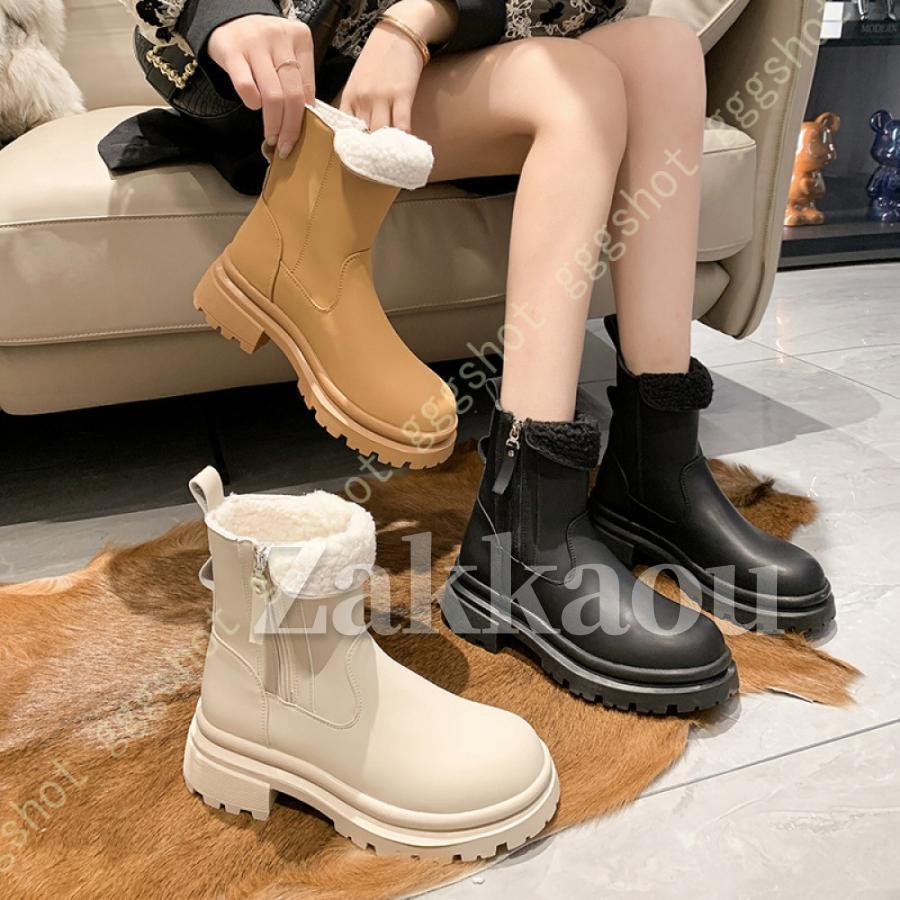【期間限定10%OFF】ムートンブーツ レディース ショートブーツ ボア 防寒 暖かい 中筒ブーツ ファスナー 防風 裏起毛 冬 歩きやすい ファー カジュアル 雪