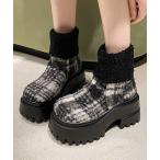 ブーツ 配色 パターン ボア 厚底 ショート ブーツ レディース