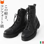 編み上げブーツ レディース 厚底 ショートブーツ 歩きやすい 痛くない レースアップブーツ 本革 レザー 編み上げ ブラック 黒 コンバットブーツ 軽量 イタリア製
