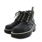シャネル CHANEL ココマーク ショートブーツ レースアップ パール 37 黒 ブラック G35367 /AN64 レディース