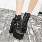 超人気 ブーティー レディース ブーツ ショートブーツ 厚底 ヒール チャンキー レースアップ 合皮 定番 格安