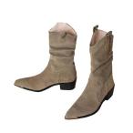 ウエスタンブーツ 膝下 ミドル丈 スエード 細見え レディース ポインテッドトゥ くしゅくしゅ 安定感 疲れにくい ジョッキーブーツ 大人