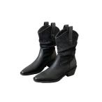 ショートブーツ レディース 太めヒール ポインテッドトゥ くしゅくしゅ スエード調 ウエスタンブーツ ミドル丈 筒太め 履きやすい 歩きやすい おしゃれ 秋冬