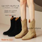 【送料無料】ブーツ レディース ショート丈 ウエスタン ショートブーツ シューズ スエード調 チャンキーヒール 太めヒール ローヒール おしゃれ 疲れない 美脚見せ シンプル 痛くない