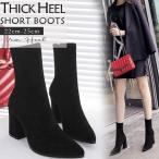 ソックスブーツ レディース ショートブーツ 太めヒール ストレッチブーツ ハイヒール ブーティ 履きやすい スエード調 歩きやすい ポインテッドトゥ