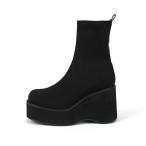 ショートブーツ 厚底 レディース 大きいサイズ スエード 8CMヒール ストレッチブーツ ニット ウェッジソール 滑り止め 秋冬 美脚