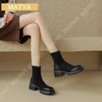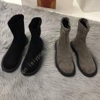 ストレッチブーツ スエード 本革 ショートブーツ レディース ソックスブーツ 秋冬 太めヒール 足細 滑り止め ソフト 履きやすい 軽量