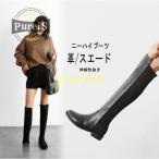 本革 ストレッチ ニーハイブーツ ジョッキーブーツ ブーツ レディース スエード 長靴 ローヒール 大きいサイズ ロングブーツ レディースブーツ ブラック