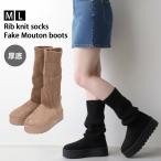 フェイクムートンブーツ 厚底 ロングブーツ レディース 靴 シューズ Y2K ニットソックス 暖かい 防寒 裏起毛 歩きやすい 滑りにくい 冬 内ボア ファー