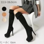 ニーハイブーツ ロングブーツ レディース 秋冬 折り返し スエード レースアップ レディース シューズ 靴 12cmヒール ブラック キャメル ベージュ