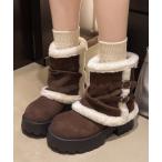 ブーツ スエード調 厚底 ムートン ショート ブーツ レディース