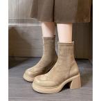 ブーツ スエード調チャンキーヒールブーツ レディース