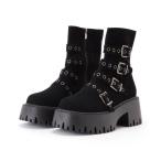 ブーツ スエード調ベルト付きトラック厚底ショートブーツ レディース