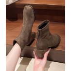 ブーツ スエード調 スクエアトゥ チャンキーヒール ショート ブーツ レディース