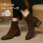 ショートブーツ レディース スクエアヒール ショート丈 ポインテッドトゥ ブーティ シンプル 無地 スエード調 履きやすい おしゃれ 通学 通勤 大きい