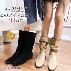 ショートブーツ レディース ローヒール スクエアトゥ スエード調 2way ミドル丈 くしゅくしゅブーツ 筒太め 履きやすい 歩きやすい おしゃれ 秋冬 美脚 黒 茶色