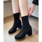 ブーツ リブニット チャンキーヒール ソックスブーツ レディース