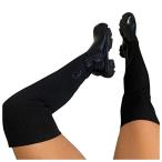 【並行輸入品】Hbeylia プラットフォーム タイト ハイブーツ レディース ファッション ストレッチ ニット レザー ラウンドトゥ チャンキ