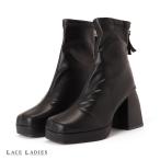 ブーツ レディース ショートブーツ チャンキーヒール レディース靴 ストレッチ スムース調 レースアップ 疲れない 安定感 歩きやすい 通勤 オフィス 後ろファスナー 春 秋 美脚 送料無料