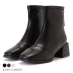 ブーツ レディース ショートブーツ ヒール ストレッチ スムースレザー スクエアトゥ 秋 大人 シンプル I2177