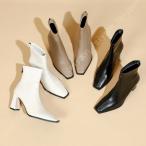 ショートブーツ レディース ブーツ ローヒール 太めヒール スクエアトゥ ショート フィットブーツ ストレッチ スムース PU 黒 ブラック ベージュ アイボリー