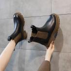 レディースショートブーツチェルシーブーツ本革秋冬靴サイドゴア厚底美脚カジュアル大きいサイズラウンドトゥスムースストレッチブーツ裏起毛