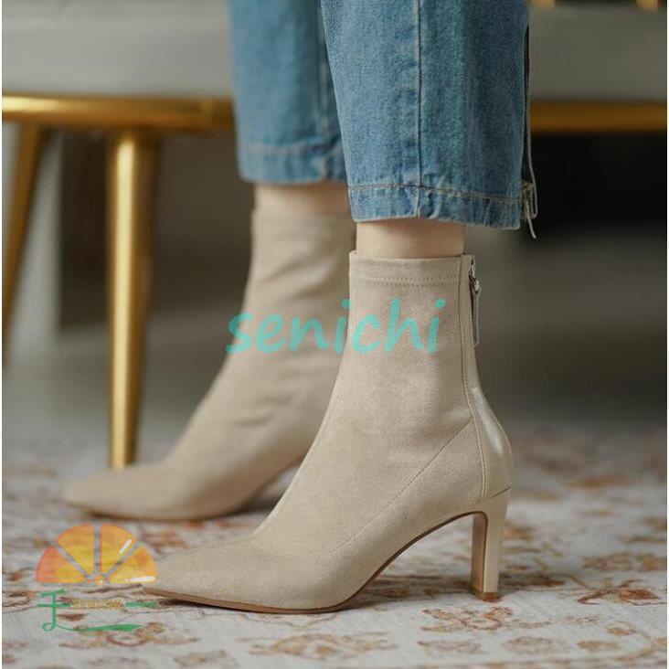 【4827円→実質3862円 P5+5%COUPON+10%OFF! 11/27 1:59迄】ショートブーツ ブーティー 靴 サイドゴア ピンヒール スムース スエード きれい 美脚効果 軽い 軽量 ショートブーツ ポインテッドトゥ 6cmヒール