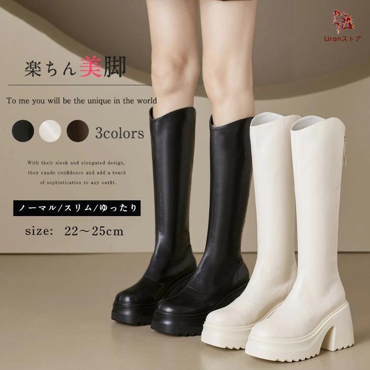 【3点15%offクーポン配布中! レディース ロングブーツ 袴ブーツ 美脚 厚底ソール シューズ ロング丈 ブーツ 春 秋 冬 ストレッチ素材 柔らかい 長靴 滑り止め ソフトの底 6cmヒール オシャレ カジュアル 美脚 ゆったり スムース 細見せ