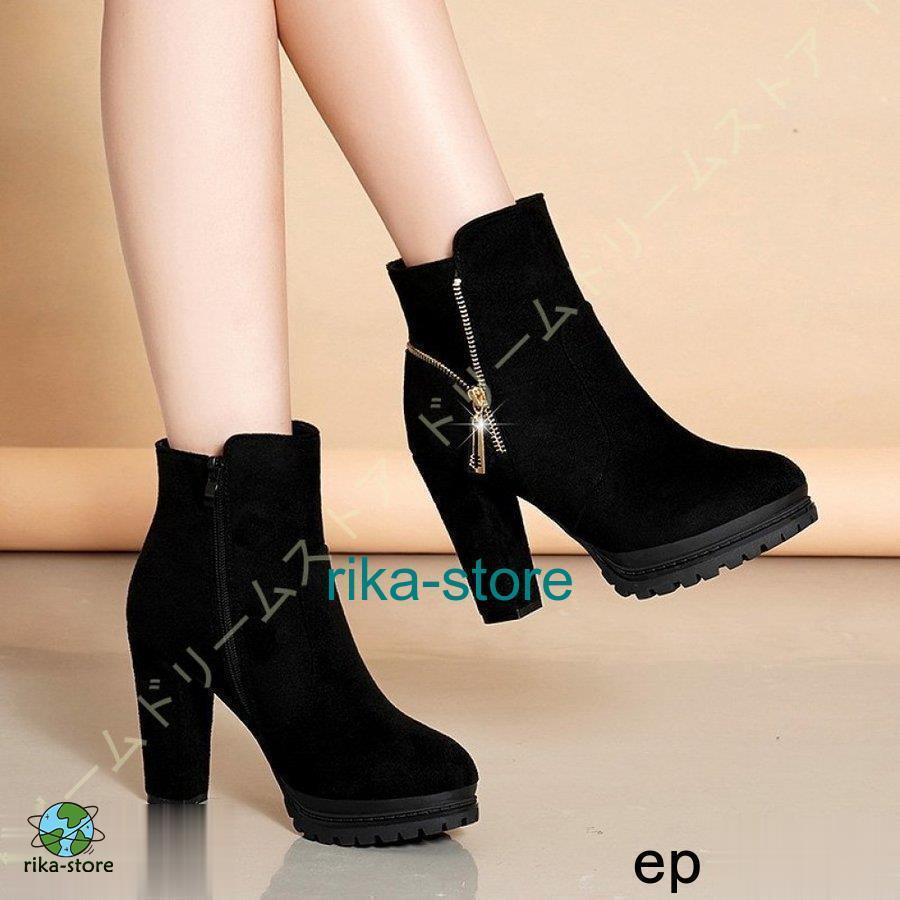【期間限定10%OFF】ブーツ レディース サイドジッパー ショートブーツ 10cm 太ヒール 厚底 ハイヒール 美脚 ラウンドトゥ ブーティー スムース チャンキーヒール 大きいサイズ