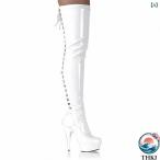 選べる靴用品プレゼント付 Pleaser プリーザー ストレッチ 編み上げ ニーハイブーツ ひざ下丈 厚底 エナメル 黒 レースアップ ハイヒール 美脚 レディース靴 大きいサイズあり
