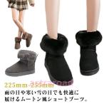 スノーブーツ レディース ムートン風 ショートブーツ 3.5cm ファー付き 厚底 フラットブーツ フェイクムートン ブーツ 防寒 保温 ス