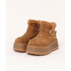 ブーツ ムートン調 ボア ベルト付 厚底 ブーツ レディース